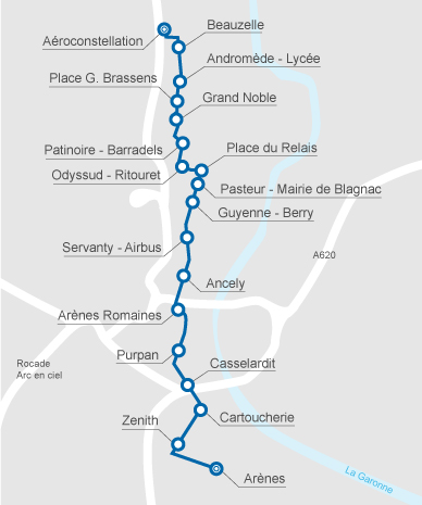 Elle offre une liaison directe entre le centre-ville de Toulouse et l’aéroport de Toulouse-Blagnac.